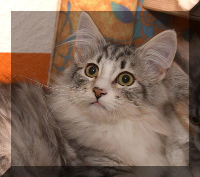 Efie hat ein richtiges Puppengesicht. So langsam schimmert auch das Silber besser durch. Fast 10 Wochen ist sie jetzt alt. |