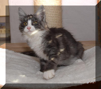 Mit vier Wochen ist Elis ein super hübsches Mädel. Ihr Silber ist immer besser zu sehen. |