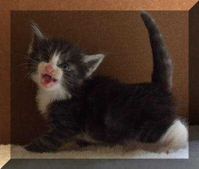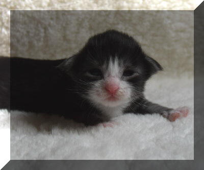 Mit fünfeinhalb Wochen sieht Elis schon richtig erwachsen und gelassen aus... Sie kann aber auch gut aufdrehen. |