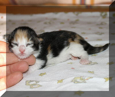 Diese kleine bunte Maus ist jetzt drei Tage alt.