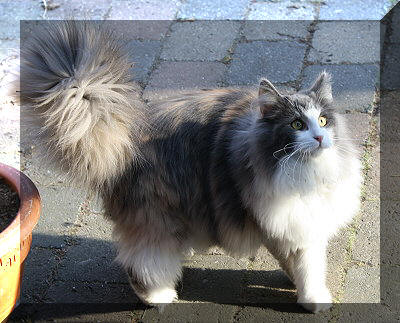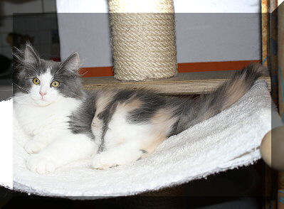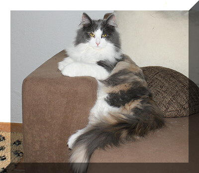 Mit zweieinhalb Jahren hat sich Tinchen zu einer prachtvollen kräftigen Katze entwickelt. Sie wiegt 5,1 kg und ist ein wahres Fellmonster.