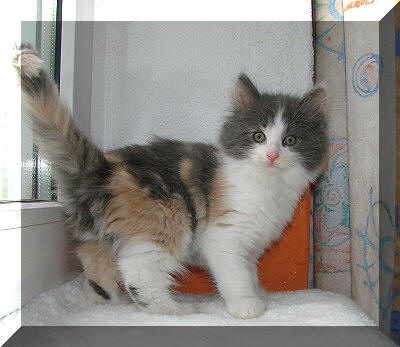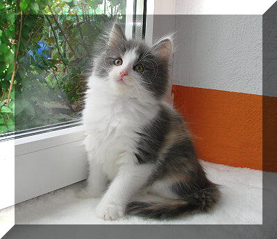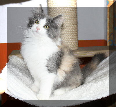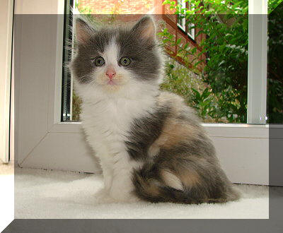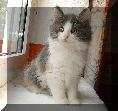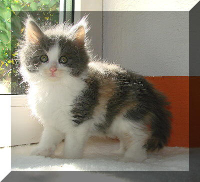 Tine ist jetzt ein gutes halbes Jahr alt und schon groß und kräftig wie eine Große. Sie wiegt 3,5 kg, hat super dicke Pfoten und ganz tolles Fell.